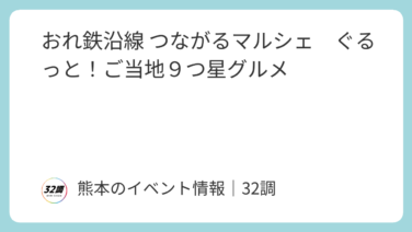 無料 おれ鉄沿線 つながるマルシェ ぐるっと!ご当地9つ星グルメ 開催日2026年02月21日(土)~02月21日(土)開催時間11:00~16:00開催場所水俣駅前大屋根広場(〒867-0045 熊本県水俣市桜井町1丁目1)内容肥薩おれんじ鉄道沿線2駅(水俣駅・出水駅広場)で同日開催されます!各駅こだわ... 2026.02.10 無料