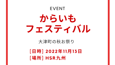 アクティビティ からいもフェスティバル2022年 大津町の秋祭りが3年ぶりに開催されます開催日2022年11月13日(日曜日)開催時間10:00~15:30開催場所本田技研工業(株)熊本製作所 総合グラウンドHSR九州からいも畑内容からいも掘り、ステージイベント、展示、物販、飲食など料金詳... 2022.10.10 アクティビティ大津町無料