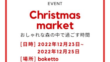 西原村 森の中でのクリスマスマーケット【boketto】 冬のお祭り開催日2022年12月23日(金曜日)~2022年12月25(日曜日)開催時間11:00~20:00※最終日の25日は18:00まで開催場所boketto(熊本県阿蘇郡西原村布田834−27)内容フード、雑貨、アクセサリー、フラワ... 2022.12.20 ライトアップ西原村