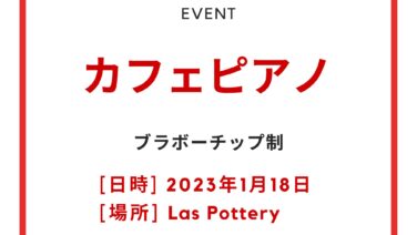 西原村 カフェピアノの日【2023年1月18日】 お洒落なカフェで生音楽開催日2023年1月18日(水曜日)開催時間13:00-16:00開催場所Las Pottery(熊本県阿蘇郡西原村布田1035−74)内容カフェを楽しみながら、生音楽が聴けます。演奏は、ピアノとベースのduoユニット... 2023.01.01 西原村音楽
