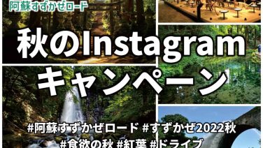 キャンペーン 【阿蘇すずかぜロード】2022秋のInstagramキャンペーン 美しい高原や水に囲まれ、さわやかな風が駆け抜ける、阿蘇南外輪山にある「阿蘇すずかぜロード」。ドライブやツーリングはもちろん、神社や博物館、ピクニックやお土産ショッピングもできる立ち寄りスポットが沢山。開催日2022年10月8日(土)~11月... 2022.10.16 キャンペーンフォトコンテスト