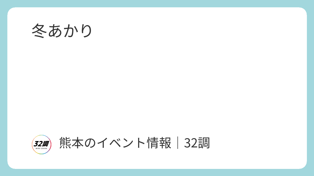 スポンサーリンク 32調|地域情報 熊本トレンド情報 冬あかり 無料 X Facebook はてブ LINE Pinterest コピー 2026.01.20 スポンサーリンク 行ってみたい 開催日 2026年02月07日(土)~02月08日(日) 開催時間 17:00 ~ 20:00 開催場所 俵山交流館萌の里 (〒861-2402 熊本県阿蘇郡西原村小森2115−3) 内容 ステージや、飲食の出店、抽選会 料金 無料 地図 行ってみたい 口コミ・コメント