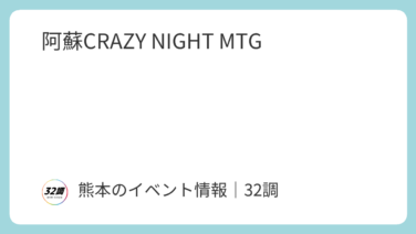 阿蘇市 阿蘇CRAZY NIGHT MTG 開催日2026年05月03日(日)~05月04日(月)開催時間5/3 10:00~5/4 12:00まで開催場所阿蘇市農村公園アピカ(〒869-2225 熊本県阿蘇市黒川656)内容全国からバイカーが集まる人気イベント。九州最大級のキャンプ... 2026.03.12 阿蘇市